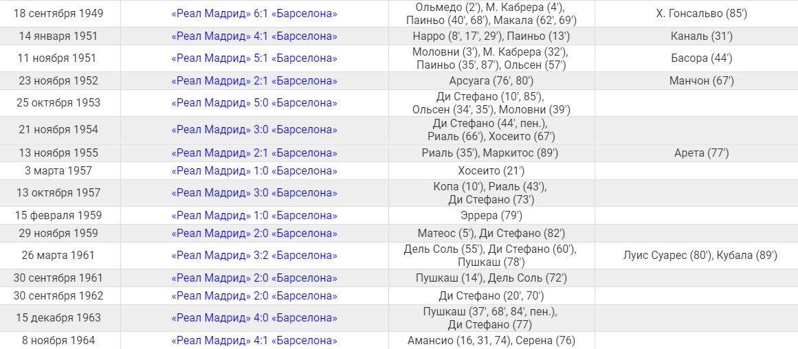 «Ռեալը» տնային խաղերի տպավորիչ վիճակագրություն ունի «Բարսելոնայի» դեմ՝ 1949-1965 թվականներն ընկած ժամանակահատվածում։